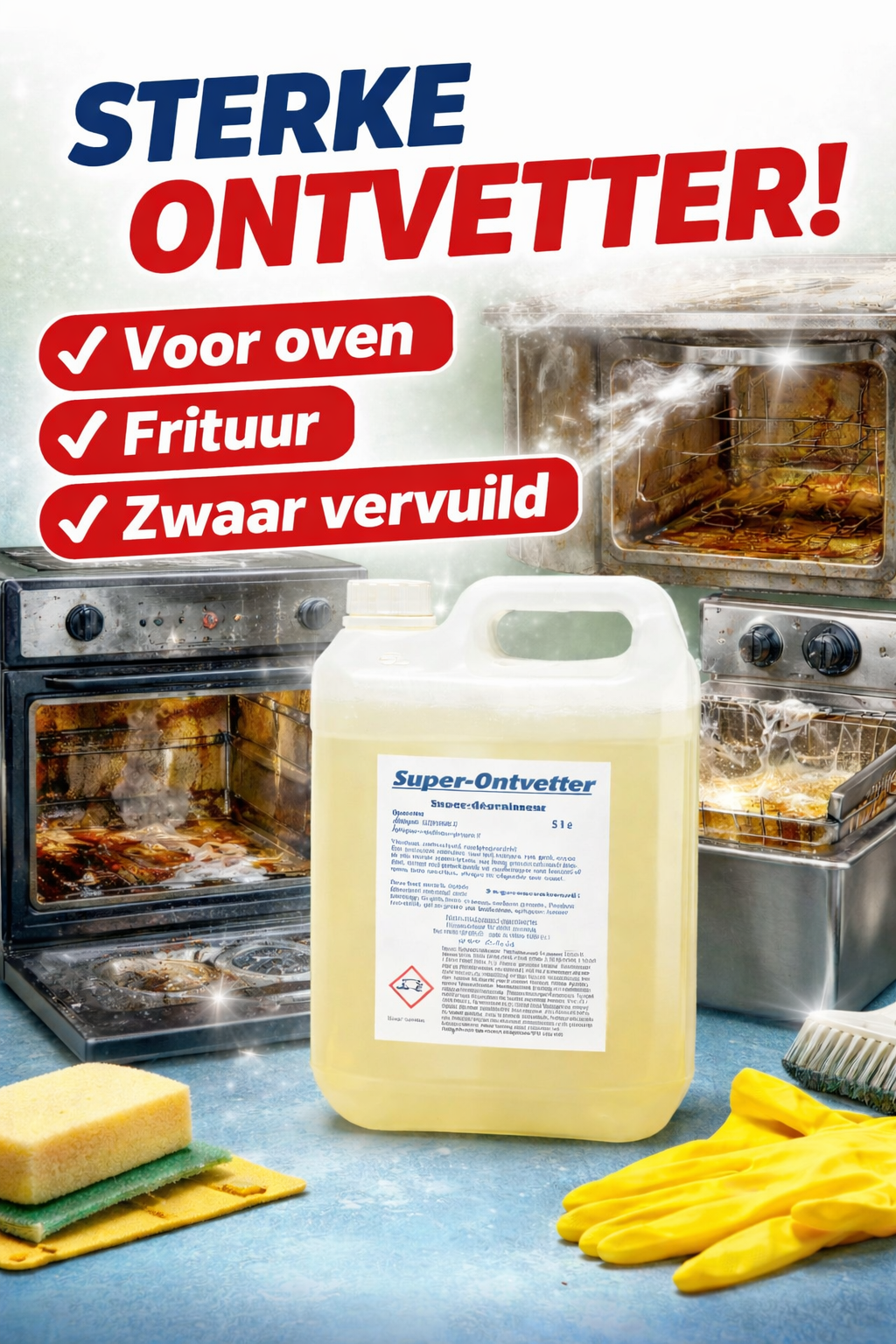 Sterke ontvetter is een krachtige universele ontvetter voor het grondig reinigen van grills, ovens en alle sterk vervuilde, vettige oppervlakken.